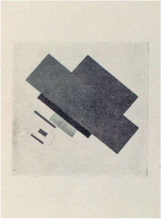 여기서 말레비치가 이미 입방체와 구를 만들어내는 정사각형의 운동성을 전제하고 있음을 알 수 있다. 그가 회화에 끼칠 가능성을 생각했던 것은 당시 그가 회화에 몸담고 있었기에 당연한 일이었다. 그러나 검은 사각형이 무대막 스케치였다는 사실을 단지 우연으로 치부하지 않는다면 무엇을 더 생각할 수 있을까?