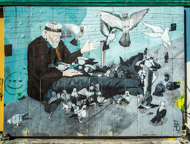 ![]() 1.3 새-인간 선교사, ‘론 스타 스완’이라 불리는 행려 정신병자의 벽화. 샌프란시스코의 미션 디스트릭트 거리에서 도시 비둘기들은 그의 친구이자 동반자였다. 이 벽화는 ‘클라리온 골목 벽화 프로젝트’ 소속의 다니엘 도허티가 2006년에 그린 것인데, 아주 심한 꼬리표가 붙어 2013년에 완성될 수 있었다. ‘SF 거리예술팀’의 제인 브레그먼이 쓴 「새-인간 선교사」 이야기는 ‘SF 거리예술 웹사이트’에 2014년 10월 7일에 게재되었다.[링크 참조] 사진은 제임스 클리포드(ⓒ2009)가 찍은 것으로, 다니엘 도허티와 ‘클라리온 골목 벽화 프로젝트’의 양해를 구했다. |