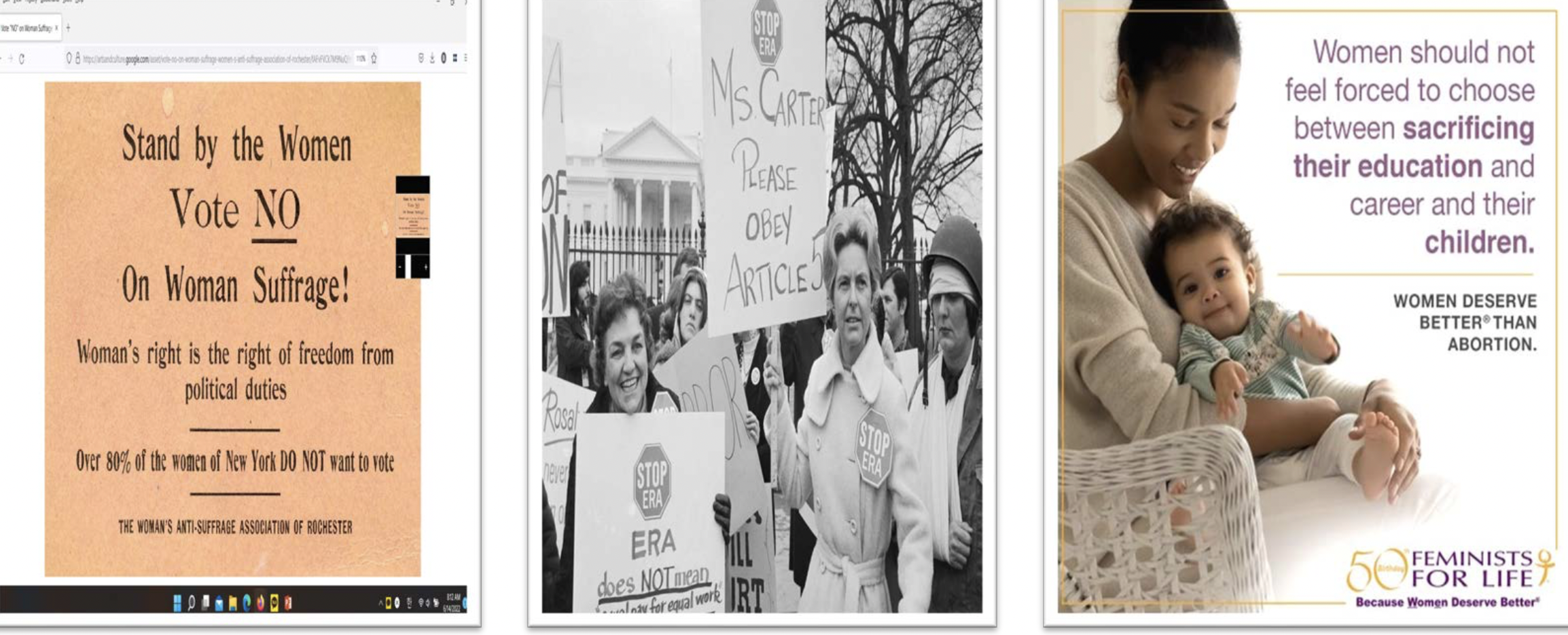 그리고 세 번째는...세 번째 사례는 최근에 임신 중지 관련해서 프로라이프 페미니즘이 한동안 또 논쟁이 됐었거든요. 그래서 몇 년 전에 트럼프 대통령 당선 때, ‘여성 행진’에서 프로라이프 페미니즘을 이제 주최 측에 넣었다가 빼고 이런 사례들이 있었습니다.