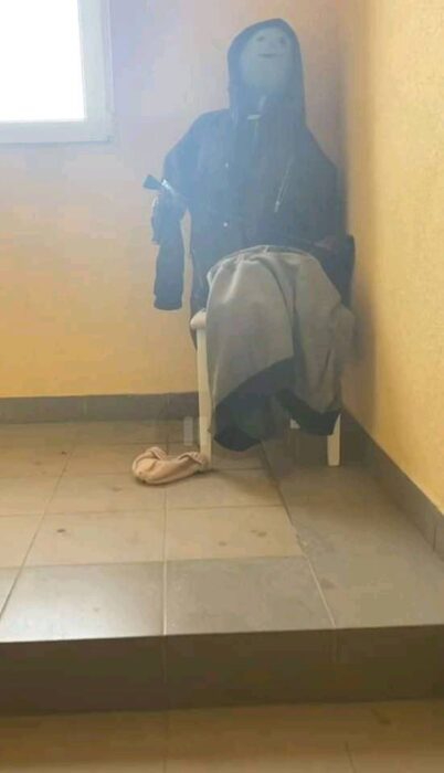 나는 기대치 않게 아주 흥미로운 유물 하나를 발견했다…… 그것도 바로 우리 집에서. 부차에 있는 십 층 짜리 우리 아파트는 큰 피해를 보지는 않았다. 미사일 한 방 맞은 것이 전부였다. 도시가 해방되고 집의 상태를 확인하러 제일 먼저 돌아온 이웃들은 입주민 채팅방에 아파트와 건물 입구의 사진들을 하나둘 올리기 시작했다. 적들은 우리 아파트에 병영, 참모부, 보급 센터 등 자기네들 둥지를 마련했던 모양이었다. 심지어 그들은 잠겨 있지 않던 아파트들을 약탈하지도 않았고 물건들을 어지러뜨려 놓았을 뿐이었다. 어느 아파트의 벽에는 저격수의 메모까지 잘 보존되어 있었다. 고층 아파트로 들어가는 입구에는 러시아 군인들이 만든 허수아비가 발견되었는데, 바로 다음 사진에서 볼 수 있다.