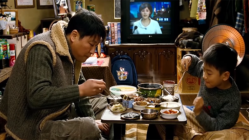 더불어 이 영화가 과연 구출의 실패인지도 다시 질문할 필요가 있다. 마지막에 가족들은 괴물과의 사투 끝에 현서가 아닌 현서와 함께 납치된 부랑아 세주를 구출한다. 마지막 쇼트는 세주와 함께 밥을 먹고 있는 강두의 장면인데, 여기에 만약 세주 대신에 현서가 놓여 있다면 전형적인 구출 서사의 마지막 장면처럼 보인다. 하지만 예상치 못한 인물을 구출하고 그와 함께 밥을 먹는 장면 속에서 매점 쇼트에 등장했던 환상은 다른 방식으로 반복하게 된다. 이런 점에서 <괴물>은 구출 서사의 답습과 위반이라는 어느 한쪽 항으로만 분류하기 어렵다. 마지막 장면 전까지 강두와 세주는 서로 전혀 알지 못했다는 점에서, 오히려 예상하지 못한 우연적인 구출의 결과라고 할 수 있다.