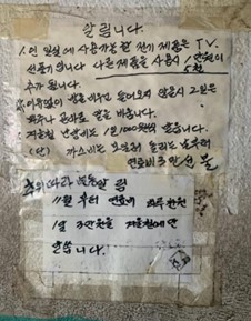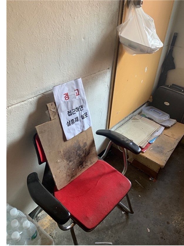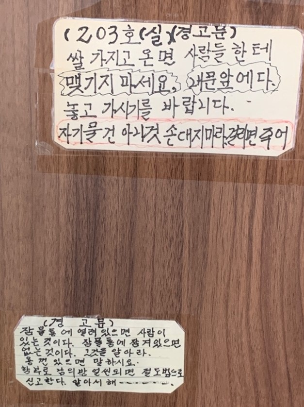 그림 4. 쪽방문 앞에 걸려있는 경고문