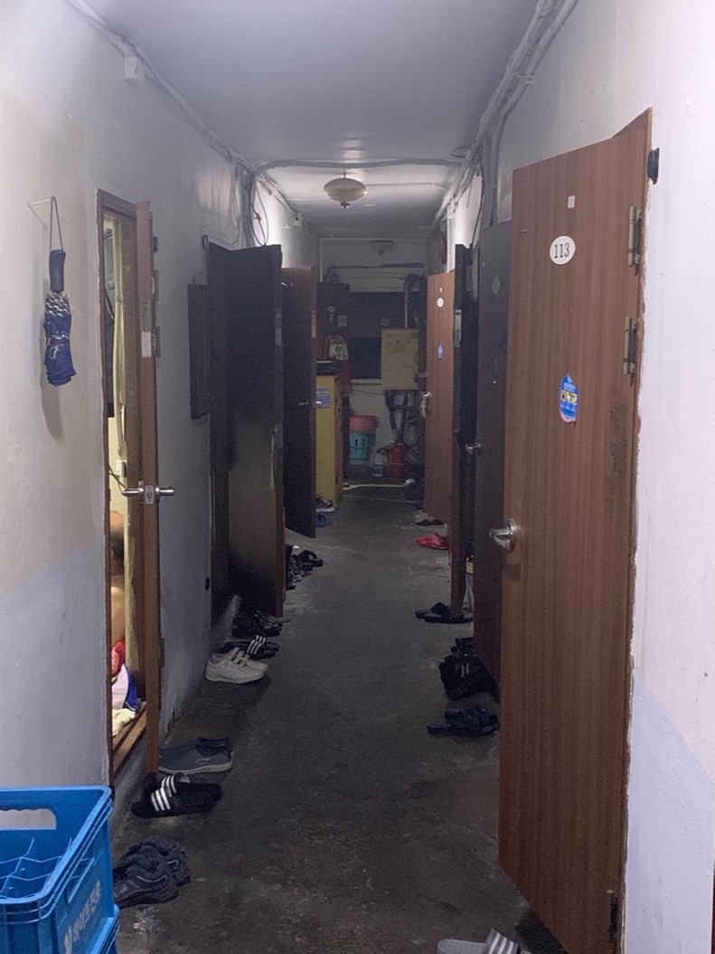 그림 5에서는 모든 문들이 살짝 열려있는 것을 볼 수 있다. 여름철 너무 더우므로 거의 모든 주민은 문을 열고 생활할 수밖에 없다. 대부분의 방문은 저렴한 재질의 판자로 되어 있는데, 너무 가벼워 바람이 살짝만 불어도 문이 활짝 열리게 되는 경우가 많다. 그러다 보니 이를 방지하기 위해 신발 끈과 같은 줄로 문손잡이를 매달아 둔다. 필자가 쪽방에 살면서 친하게 지내던 주민에게 왜 다들 신발 끈으로 문을 걸어두는지 물어본 적이 있다. 그 주민은 문이 확 열리면 혹시라도 다른 사람에게 피해를 줄 수도 있고, 괜히 시비가 걸릴 수도 있어 그런 걸 애초에 방지하고자 거두는 거라고 대답해 주었다. 특히나 여름철에는 더워서 사소한 일로도 싸움으로 번질 수 있기 떄문에 서로 조심한다고 이야기해 주었다. 나는 바로 이것이 쪽방의 사회적 관계를 가장 잘 보여주는 것이라는 생각을 했다. 서로에게 피해를 주지 않기 위한 배려심이기도 하고, 갈등을 피하려는 방법이기도 하며, 아주 미세한 바람이라도 느끼기 위한 생존 수단이기도 한 것이다. 그리하여 살짝 문이 열려 틈새로 보면 타인이 방에서 무엇을 하고 있는지 볼 수 있는 정도, 바로 생사 확인이 가능한 정도의 관계가 쪽방촌의 사회적 관계를 나타내는 것이다.