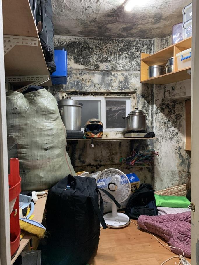 그림 3은 내가 살던 쪽방 건물의 지하 쪽방 사진의 모습으로 사회복지사와 함께 주민을 방문하였을 때 찍은 사진으로, 여름철 높은 습도로 인해 한쪽 벽면이 곰팡이로 뒤덮여 있는 쪽방의 모습이다. 이 사진 역시 열악한 환경에서 간신히 생계를 이어가고 있는 쪽방촌 주민들이 매일 직면하는 어려움, 일상이 재난적인 상황을 잘 보여준다. 흔히 일 최고기온이 33℃ 이상인 날을 폭염이라고 한다. 하지만 쪽방의 여름은 폭염이 아니어도 곰팡이가 끼는 이런 환경이 일상인 것이다. 이렇게 매일 매일 재난과 같은 일상이 쪽방촌 주민들의 삶에 그림자를 드리우면서 폭염이나 추위는 더 이상 특별한 일이 아니게 되는 것이다.