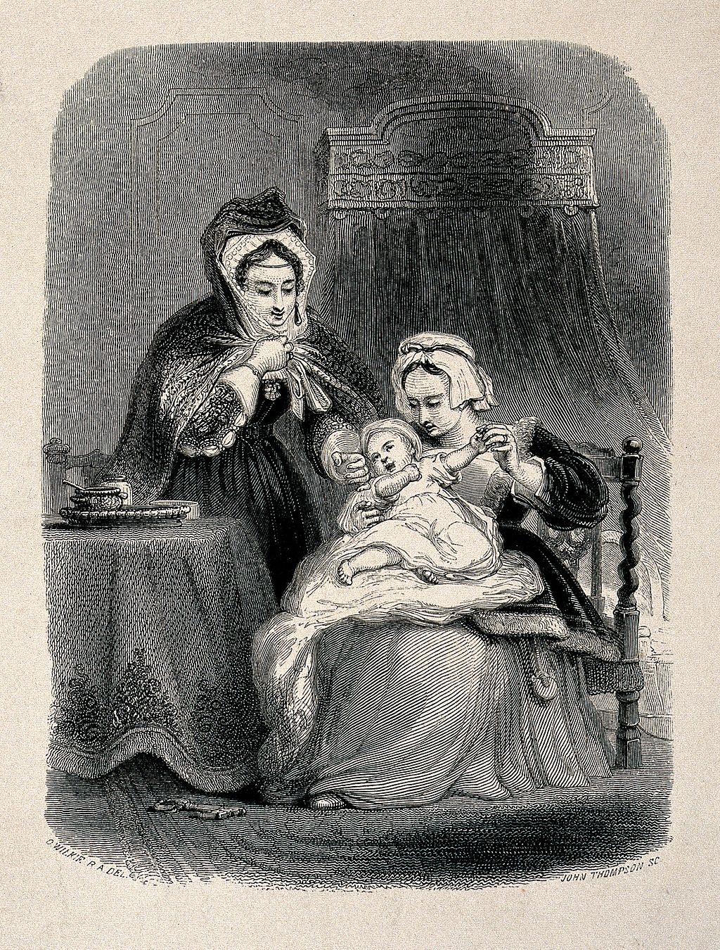 존 톰슨(J. Thomson)의 목판화 < A female servant holds a small child whilst its fashionably dressed mother touches its face on her way out.>(1840)