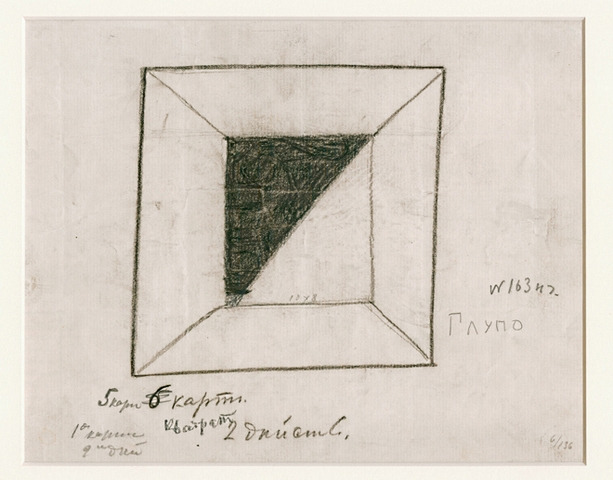 어쩌면 말레비치에게는 검은 사각형 자체를 회화로 재현한 결과물보다 그것을 그려내는 행위와 의미가 더 중요했을지 모른다. 재미있는 점은 <태양에 대한 승리>가 상트페테르부르크에서 상연되던 1913년 당시 검은 사각형 스케치가 실제로 존재했는지 분명하지 않다는 점이다. 그럼에도 저자는 "말레비치가 <검은 정사각형>의 탄생을 1913년으로 정할 권리가 있다"[15]고 말한다. 1910년대에 비대상성을 둘러싸고 각축을 벌이던 예술계 상황을 차치하더라도, 말레비치가 생각했던 검은 사각형이 가진 속성을 생각하면 그것이 물질로 실재하는지 여부는 중요하지 않기 때문이다.