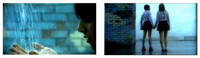 그 수가 많지 않은 이미지들 가운데 비는 유일하게 그 성격이 변한다는 점에서 주목할 필요가 있다. 첫 장면에서는 비가 오지 않는 철조망 안에서도 소녀들은 흠뻑 젖어 있었고, 사람들은 이 비를 피하고자 우산을 쓰고 있었다. 그런데 키스 장면 이후 소녀들은 하늘에서 떨어지는 이 물을 하나의 축복처럼 받아들인다. 우산을 쓴 사람들에게서 비 내리는 하늘로 카메라를 수직 이동하던 카메라는 어느새 소녀들을 따라 수평적으로 움직이고, 이때 소녀들은 철조망 안이 사실은 철조망 밖이고 더욱 넓은 세상임을 발견한다. 그리고 여전히 비 맞는 사람들을 떠나 맑은 하늘 아래 지평선으로 떠난다.