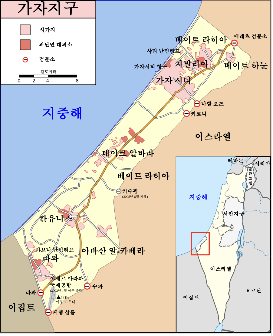 위의 가자지구 그림을 보면, 리나 할라프 투파하가 지은 시 「달리라는 명령」의 조건을 구체적으로 그려볼 수 있다. 위 시의 화자가 말하는 “이곳 바닷가 감옥”은 바깥으로 나갈 수 있는 육로가 막혀 있으며, 바깥으로의 유일한 길인 지중해에 둘러싸인 가자의 상황을 알 수 있다. 만약 우리가 팔레스타인이나 가자에 대한 어떤 지형적인 지식이 없다고 하더라도 위의 지도를 참고하면 작품을 읽는 것이 어떤 절박함에의 요구인지 이해하기는 어렵지 않다. 또한 땅 끝에 매달린 존재, 땅 끝의 목숨이 어떤지 이해하는 것은 어렵지 않다. 이러한 팔레스타인 민족의 조건을 보며, 그들에겐 “더 이상 어디에도 바깥은 없어. 그저 우리가 있는 곳”(「무제」, 44쪽)이라고 시인 수헤이르 함마드는 단언한다. 이러한 시집을 읽으며 우리는 무엇을 상상하며 문학적 지평을 기대할 수 있을까. 서럽게도 이 시집은 그 기대를 할 수 없음에서부터 쌓아올린 외침임을 미리 전제하며 읽어야 한다. 그리고 여기에서 일어나고 있는 것은 “집단학살”임을 바로 보아주길 바라는 시인들의 외침에 모든 방어기제를 거두고 다가가야 한다.