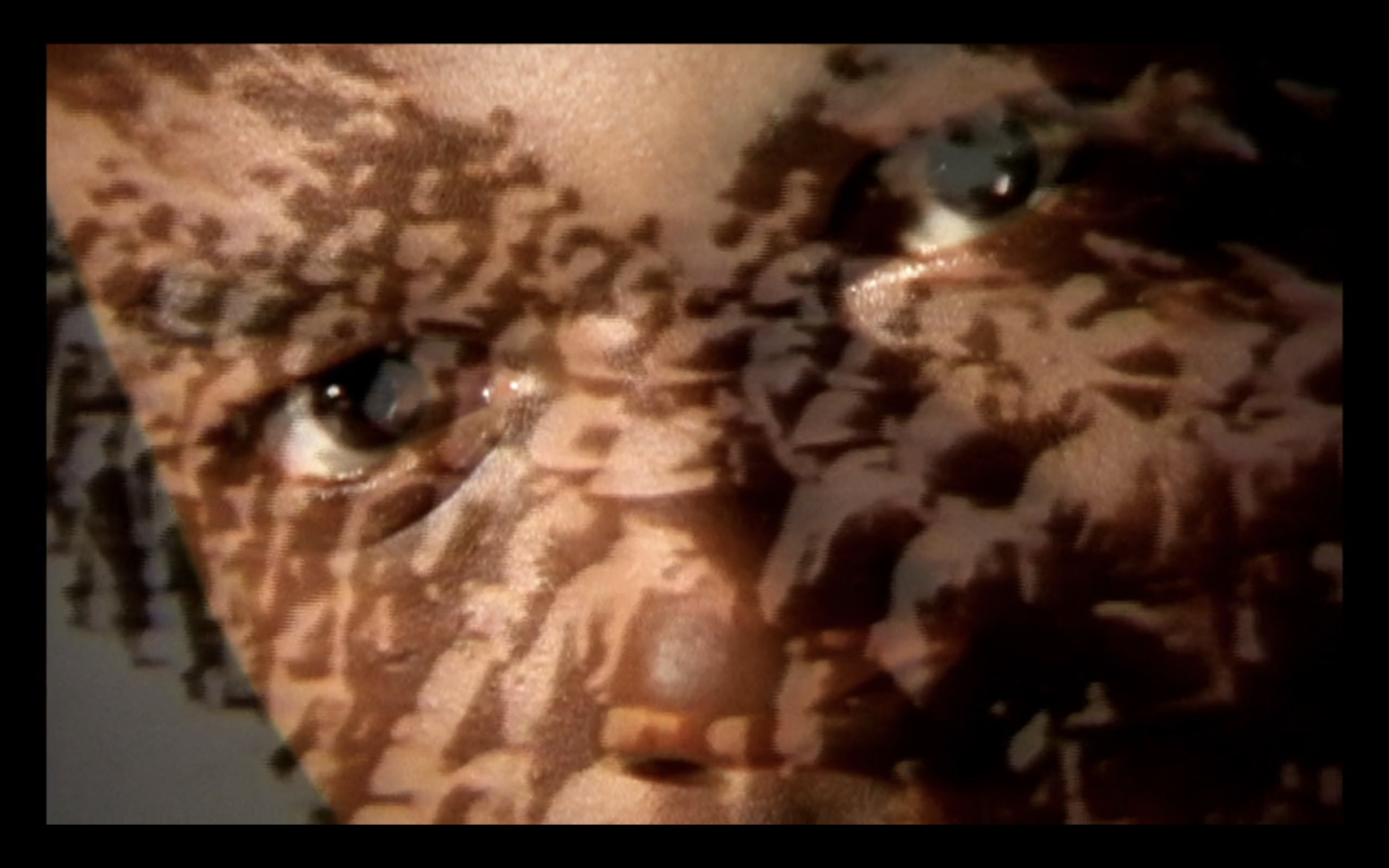 그러나 <프란츠 파농>에서 아이작 줄리언은 거울로서의 눈이 지닌 시선의 폭력성을 가시화하는 데서 그치지 않는다. 영화에서 ‘눈’은 한 주체가 정체성을 구성하게 하는 식민주의의 폭력이기도 하지만, 다른 한편 기존의 식민화된 시각을 다시 ‘볼’ 수 있게 하는 방법이기도 하다. <그림 3>처럼 영화에는 인물이 카메라를 정확하게 바라보며 관객에게 말을 거는 장면이 빈번하게 등장하는데, 렌즈를 겨냥하는 눈들 중 대부분은 극중 파농의 것이다. 과거 흑백 사진 속 파농의 두 눈 위로 인터뷰와 드라마가 오버랩(Overlap)되거나, <그림 4>처럼 알제리전쟁의 기록 사진 위로 파농을 연기하는 아역, 청년 배우의 두 눈이 클로즈업되어 오버랩되는 식이다. 무엇을 바라보는가, 무엇을 바라볼 것인가를 생각할 때, 이때의 두 눈은 앞서 파농이 말한 ‘교정하는 거울’로 이해해 볼 수 있다. 파농의 눈은 식민주의의 참상과 알제리 전쟁을 똑바로 보고 있고, 더욱이 카메라 맞은편에 앉아 있는 관객을 뚫어져라 바라보고 있다. <프란츠 파농>은 파농이라는 극중 주인공의 시선에 관객을 이입시켜 식민화되고 인종화된 주체로서 비가시화되고 비인간화된 흑인성을 사유하게 함과 동시에, 관객들이 인물의 시선을 따라가게 하여 파농을 마주하는 관객 자신의 위치성을 자각하게 하고 있다. 이때의 관객은 1950년대에 쓰인 파농의 책에서라면 흑인뿐만 아니라 백인도 포함한다.[6] 그리고 영화가 만들어진 1990년대의 관점에서라면 인종과 계급, 성정체성 등이 복잡하게 교차된 여러 주체들을 아우를 것이다. 할리우드 영화에서의 ‘응시(gaze)’를 이후 페미니즘 영화 이론가들이 남성적인 시선, 즉 서구 백인 남성의 관점으로 몰입시키는 장치라는 이유로 비판한 것과 비교해본다면, 이 영화는 백인 남성이 (비인간으로) 바라보는 대상을 관객이 함께 바라보게 되는 영화라기보다는 흑인 주체가 바라보는 관객인 ‘나’ 자신의 위치를 상기하게 되는 영화에 가깝다. 이 대목은 영화에 대한 인용구로 시작하는 이 영화의 앞부분과도 연결된다.